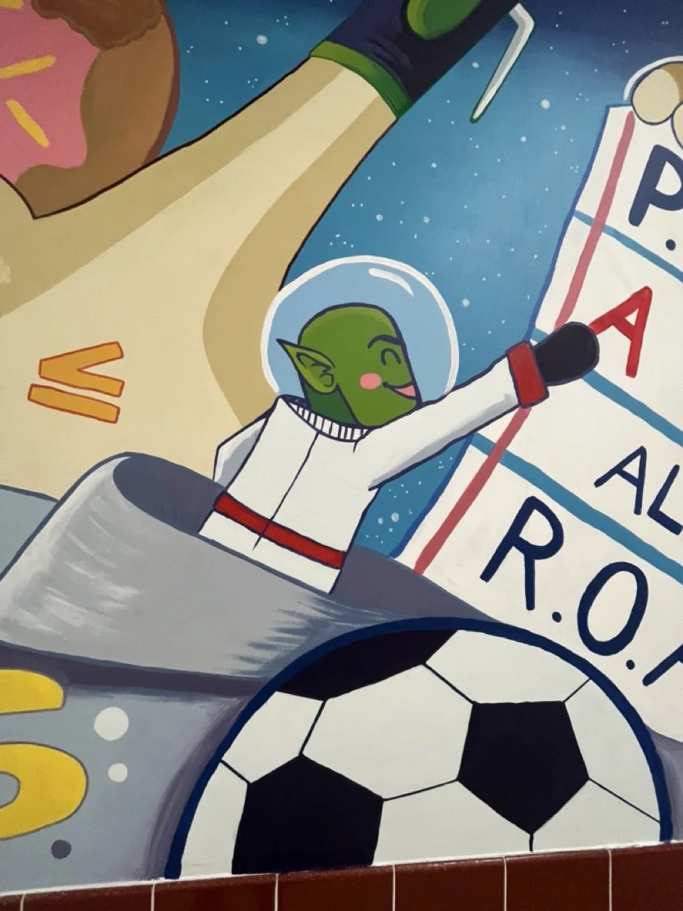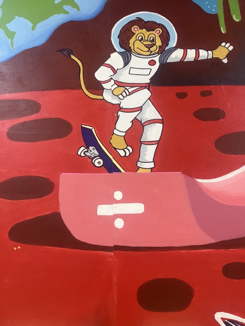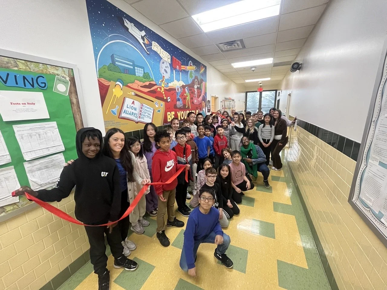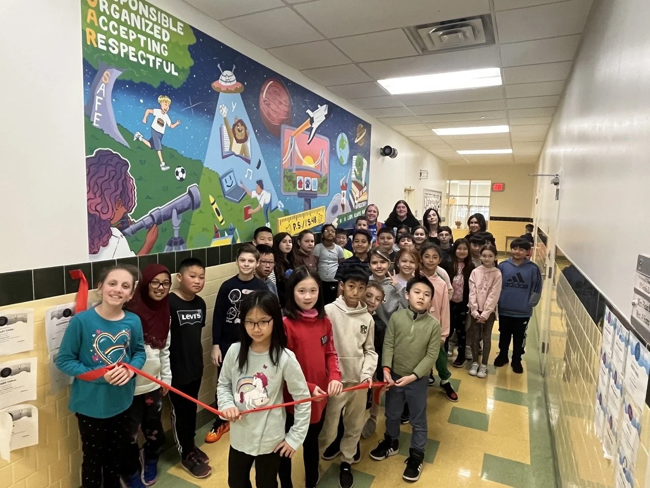Art Director Jodi Dareal worked with 95 4th grade students at PS 48 in Staten Island to design this mural titled “Imagination”. Students helped paint this 20ft x 5ft mural on polytab and it was installed on the 4th floor across from the library.