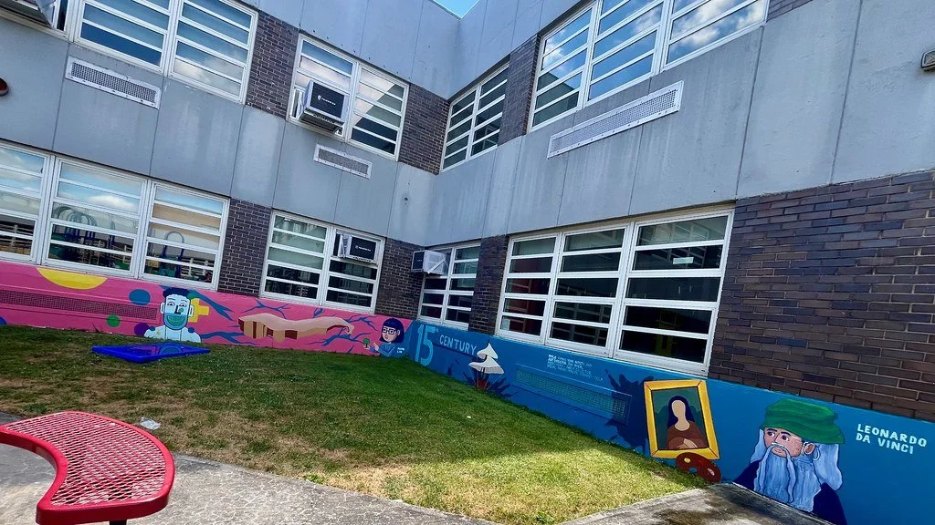 Principal Bonnano of PS 60 envisioned including different themes and specific concepts that the students learned about in each area.  Artists interpreted these themes and included different visual elements to inspire students to learn more about the people, places, and subjects in the murals.